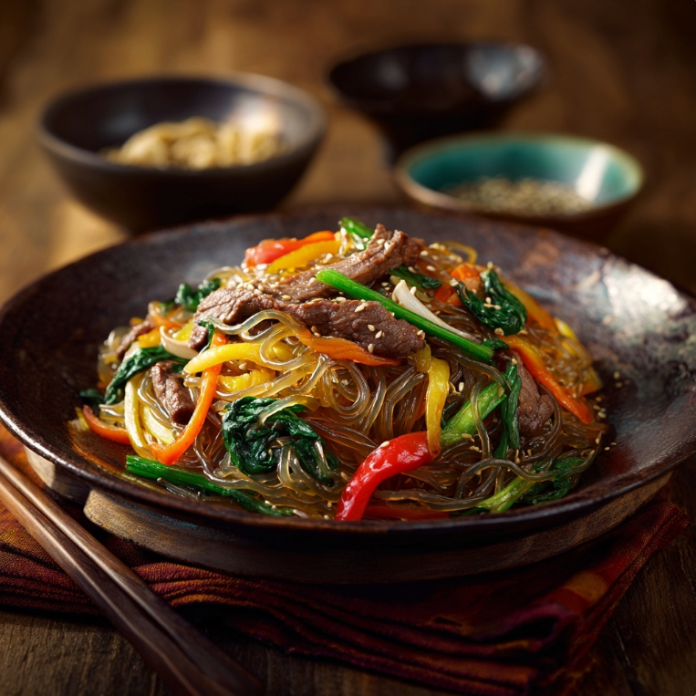 잡채는 쫄깃한 당면과 다양한 채소, 고기의 조화가 매력적인 대표적인 한식 요리입니다. 달콤짭짤한 양념 덕분에 남녀노소 누구나 좋아하는 메뉴입니다.